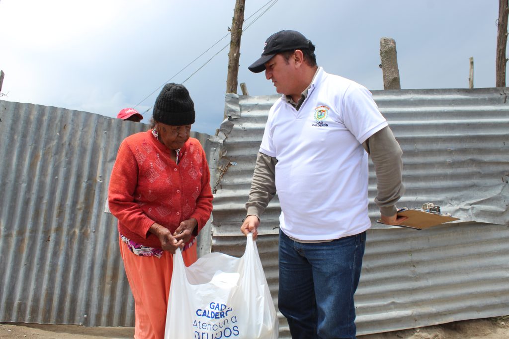 Todos los martes el Equipo del GADPR Calderón entrega apróximadamente 50 kits de alimentos a personas de escasos recursos y grupos prioritarios. Este trabajo es posible gracias al convenio con el Banco de Alimentos.